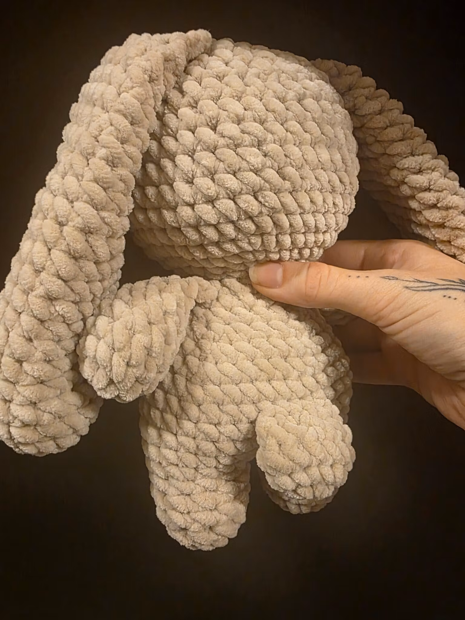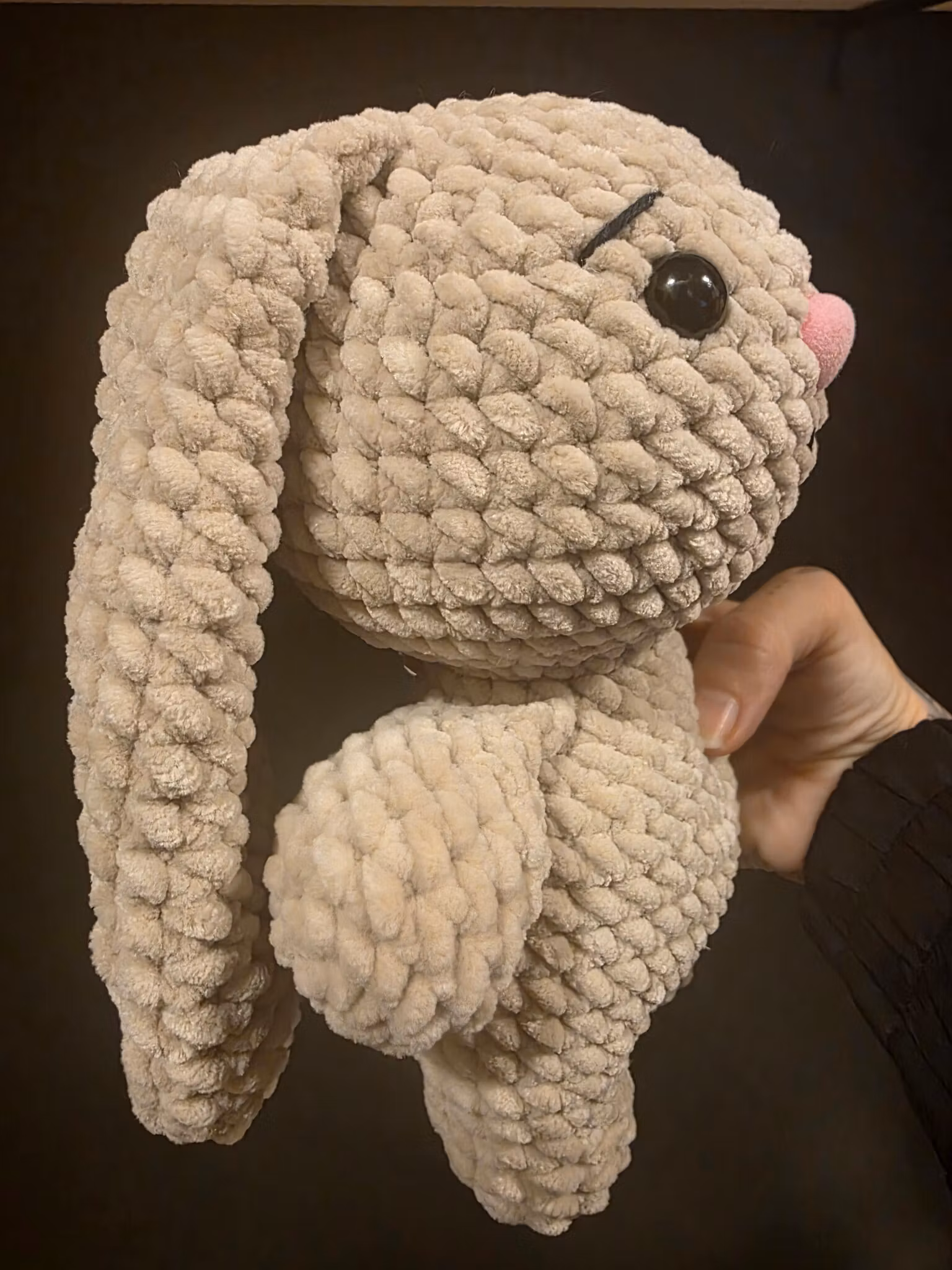 Hun er heklet i et utrolig mykt og fluffy garn som gjør henne ekstra god å holde rundt. Med sitt rolige uttrykk og varme utstråling blir hun raskt en trygg favoritt – enten det er til kos, trøst eller som en fin detalj på barnerommet.
