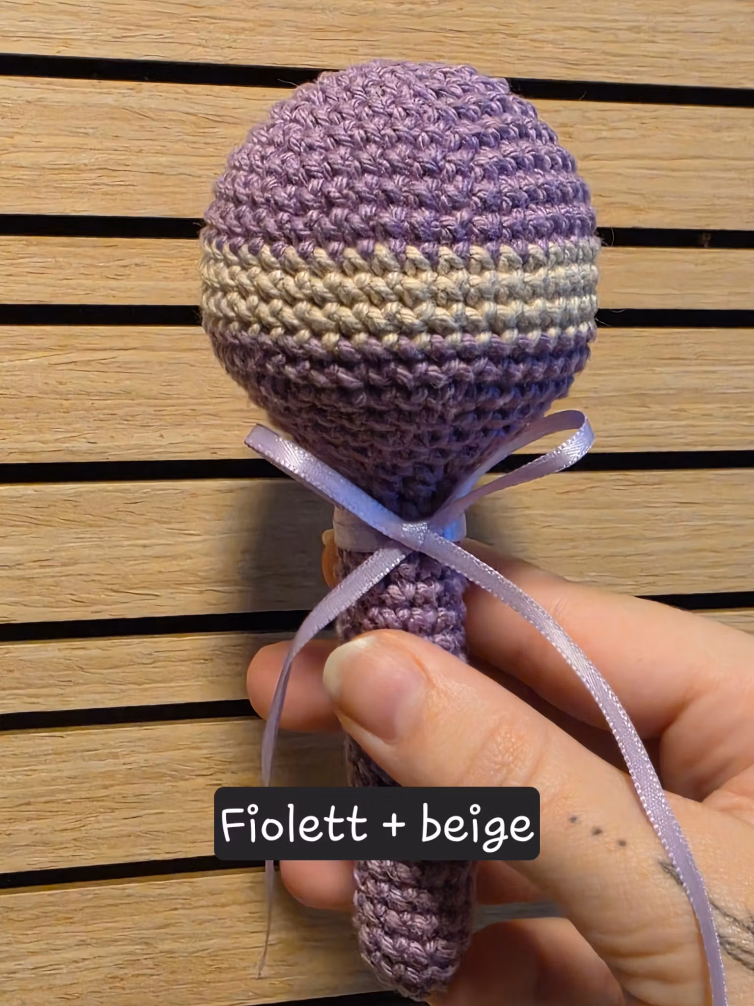 Den myke formen er perfekt tilpasset små barnehender, mens den rolige raslelyden stimulerer sansene på en behagelig måte. Hver rangle lages for hånd og får sitt eget unike preg – ingen er helt like.